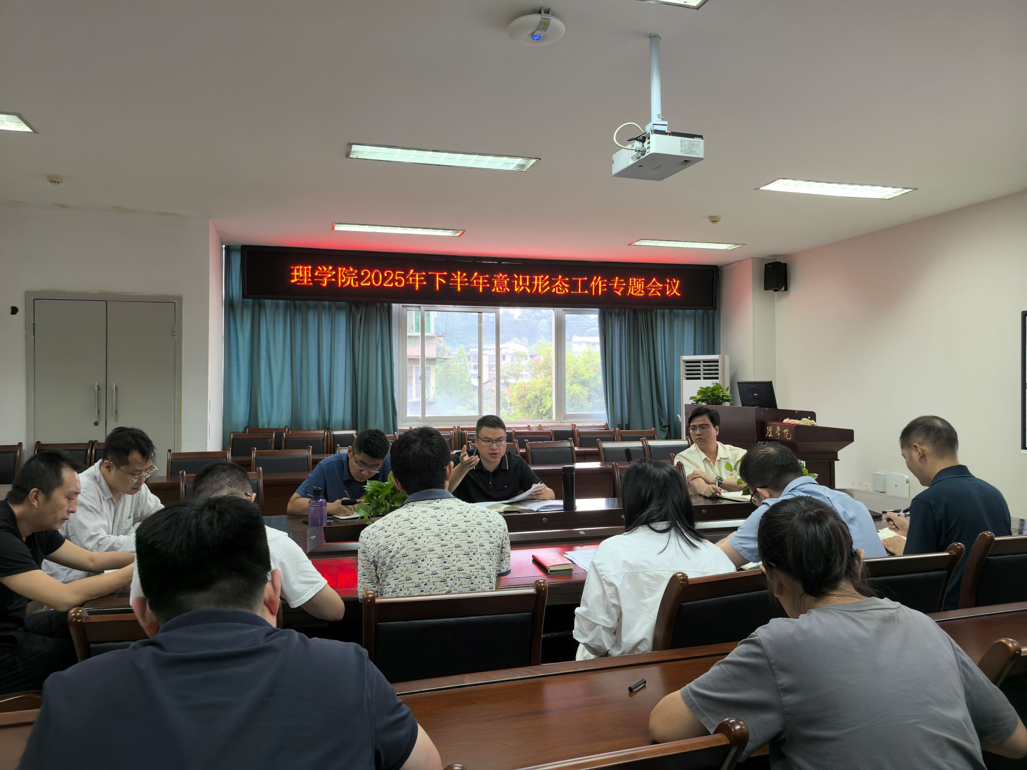 9月16日下午,学院于会议室召开了意识形态工作专题会议。学院领导班子、党委委员、纪委委员、党支部书记、系室主任参加会议,会议由学院党委书记胡永波主持。
