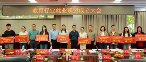 会上还举行了“校外就业育人导师”聘书颁发和“教育行业就业基金”捐赠仪式。11家联盟成员单位共捐赠“教育行业就业基金”19.5万元,用以支持我校学生实践实习、职业技能培训、就业指导服务等。