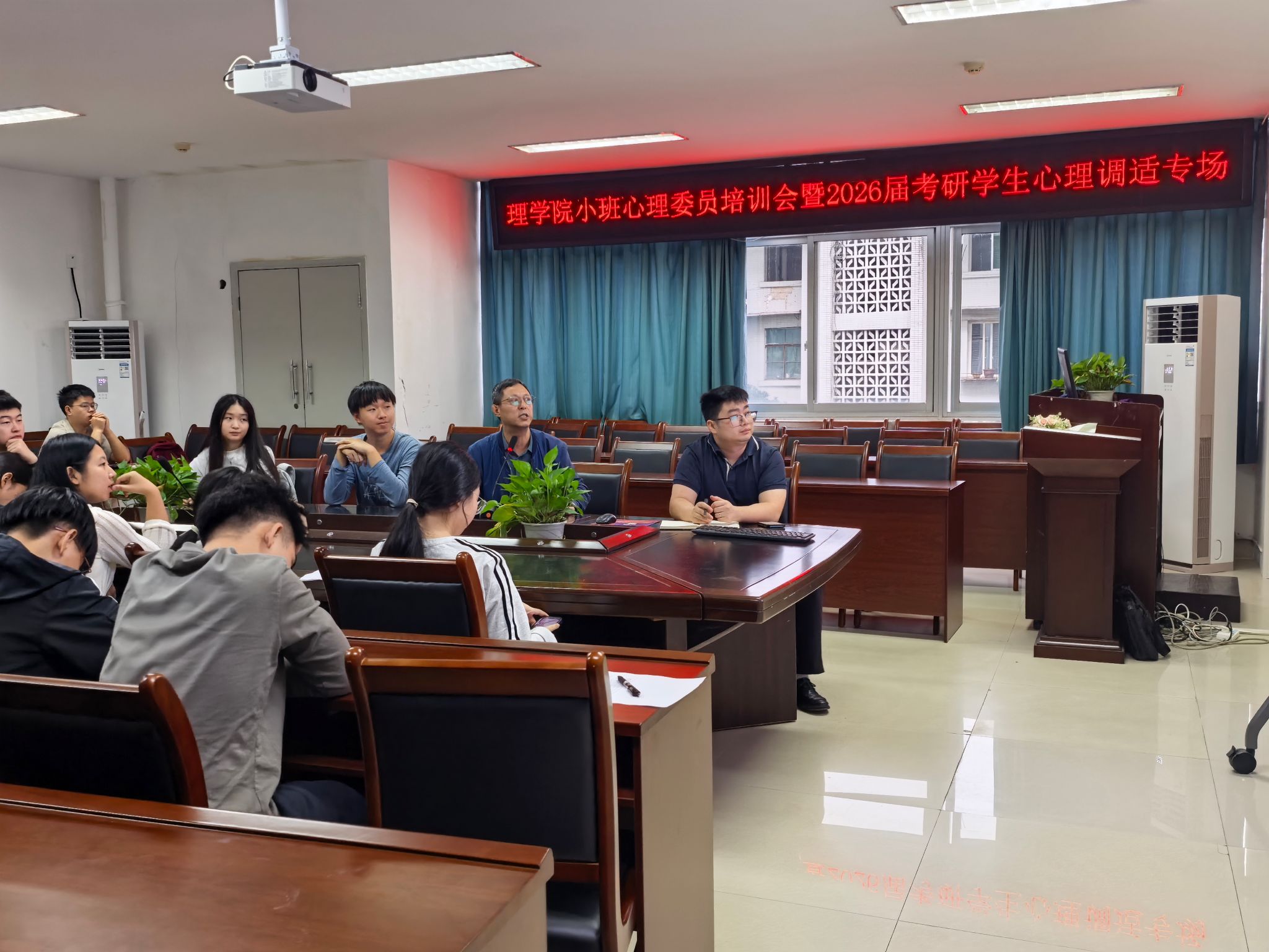 为助力2026届考研学子科学应对备考压力,强化心理委员履职能力,理学院于14日下午在11教305举办心理培训专场活动。活动特邀四川农业大学心理健康教育办公室主任欧居湖副教授,及学院2025届成功上岸毕业生黄欣、侯颖担任分享嘉宾,为在场师生提供精准化心理赋能支持。