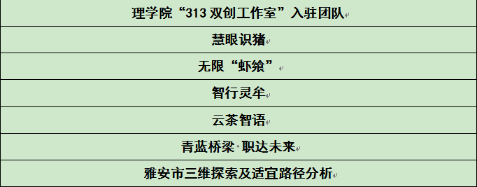 此次入驻申请答辩的圆满举行,正式确定了313双创工作室的6支入驻团队,公示如下表。本次答辩作为理学院创新创业教育的重要一环,通过"以赛促学、以评促创"的培养模式,有效激发了学生的创新潜能,营造了浓厚的学术创新氛围。后续,理学院将依托313双创工作室平台,为入驻团队提供独立工位、设备支持、资金扶持、“一对一”导师指导等全方位资源保障,助力项目成果转化,培养更多复合型创新人才。