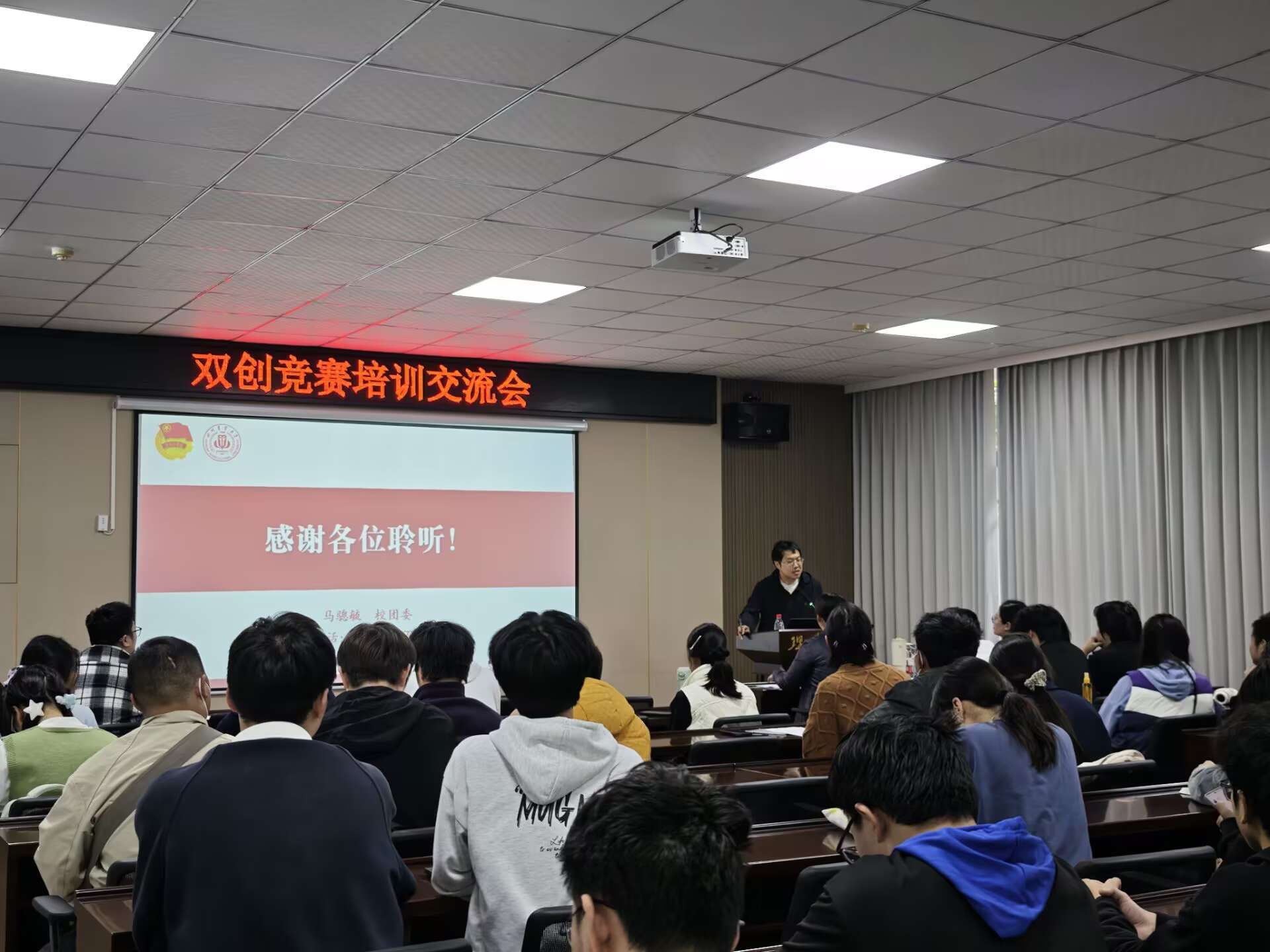 双创竞赛培训交流会由理学院副院长沈照力主持,特邀校团委办公室二室主任马骢毓担任主讲嘉宾,为在场师生带来干货满满的专题分享。学院各系室教师及各班级同学踊跃参与,培训环节内容充实、氛围热烈,现场互动积极、交流充分,取得了良好成效。