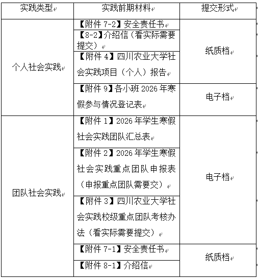 (1)个人社会实践材料均由小班宣委汇总收集并提交,团队社会实践材料均由队长收集并提交(纸质档+电子档)