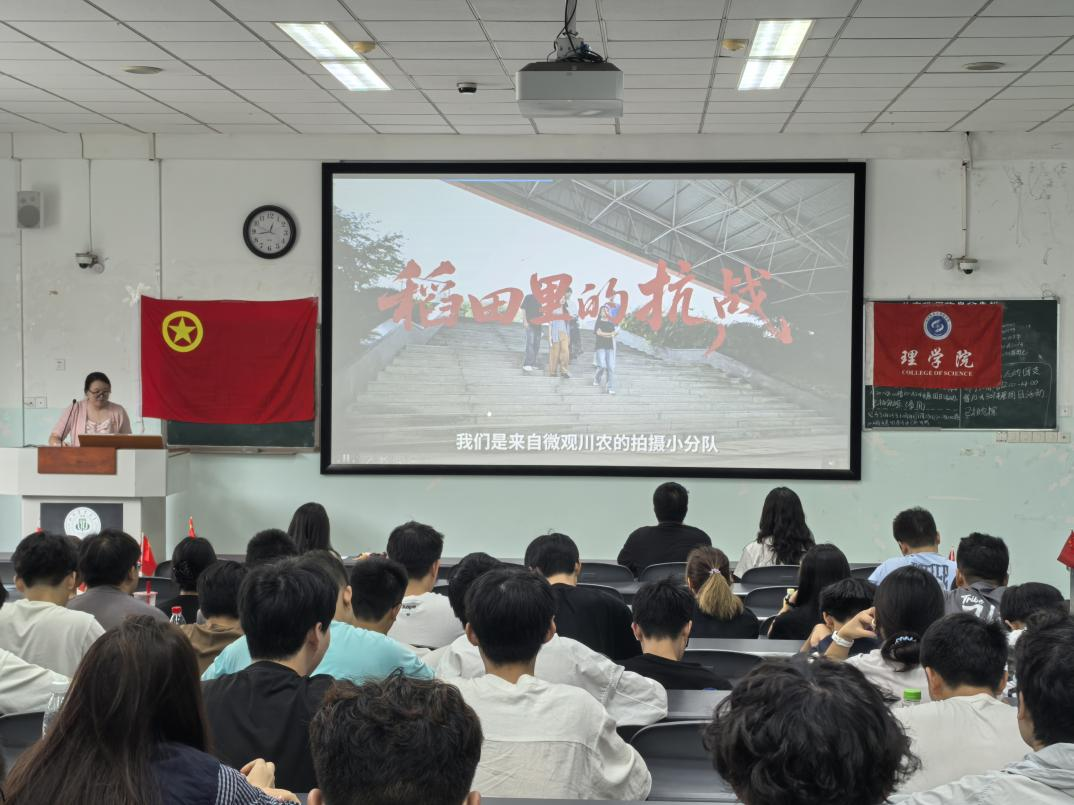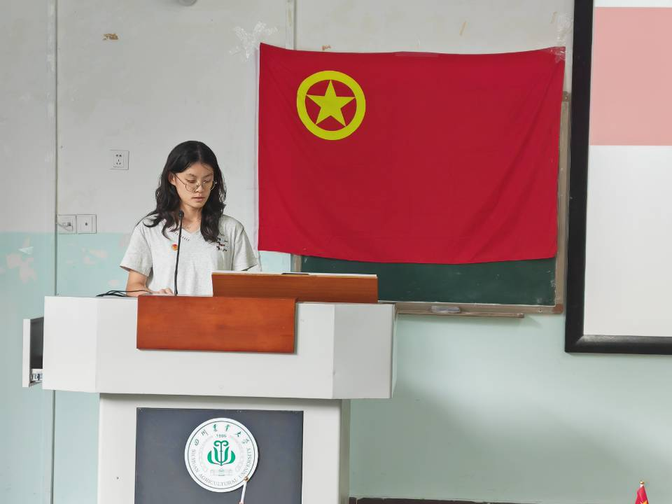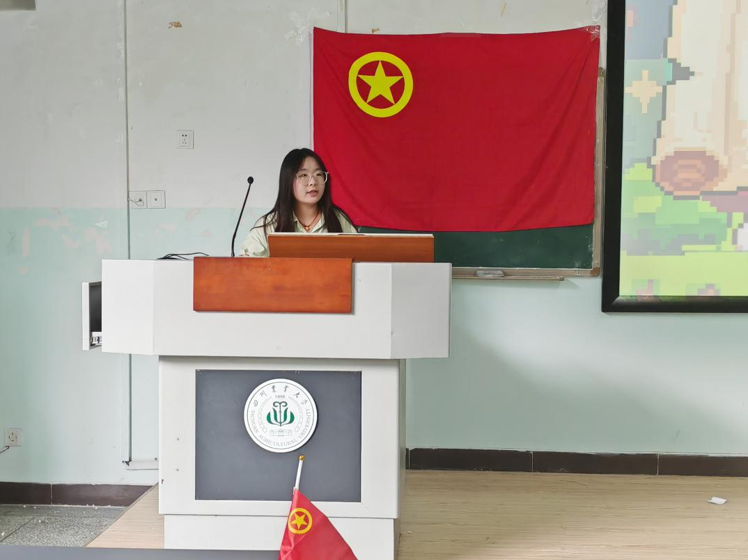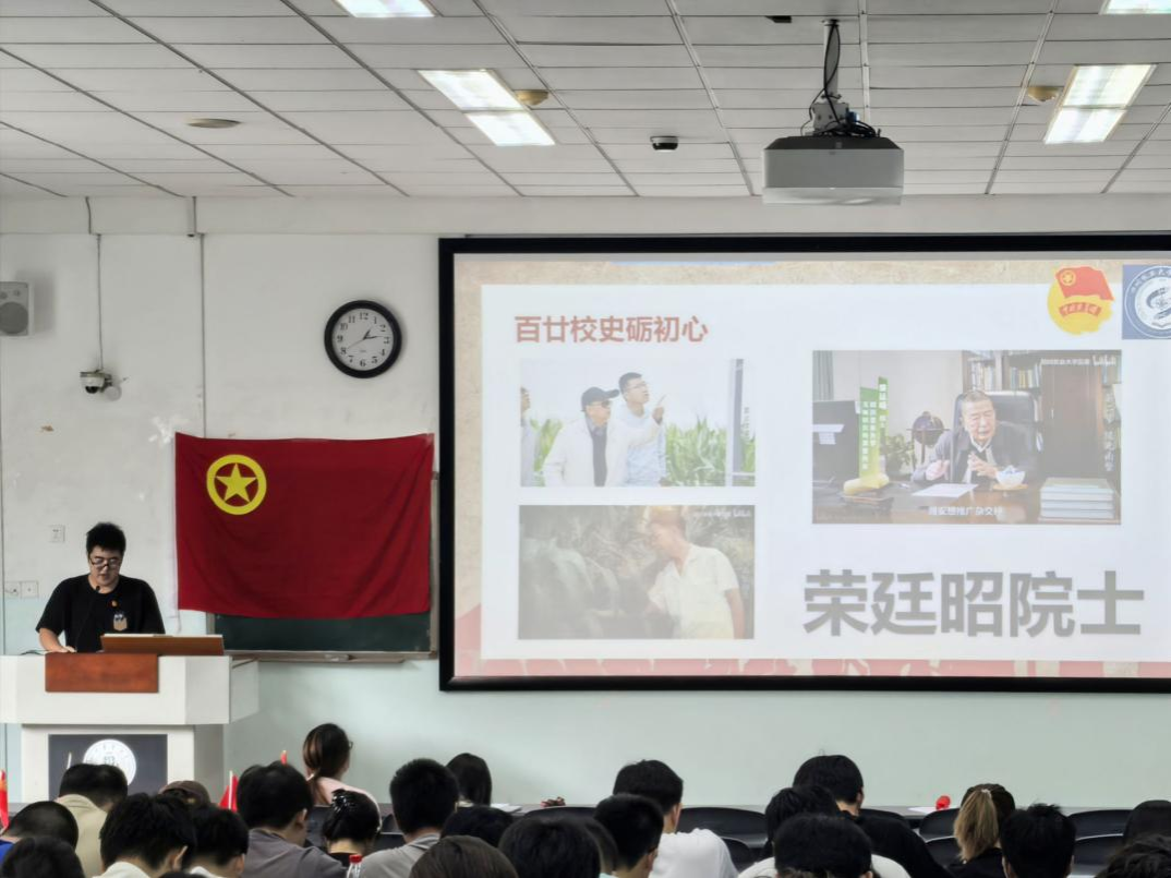 浸润百廿校史,激扬奋斗之志。时值学校120周年校庆,理学院团委学生兼职副书记李吉带来校史主题分享,带领同学们重温学校百廿征程中与民族同命运、与时代同步伐的辉煌历程,激励大家以前辈为榜样,传承川农大精神。现场同步启动的“校史文化打卡二课活动”,更将校史学习从“倾听”转变为“讲述”,鼓励每位同学成为校史文化的传承者与代言人。