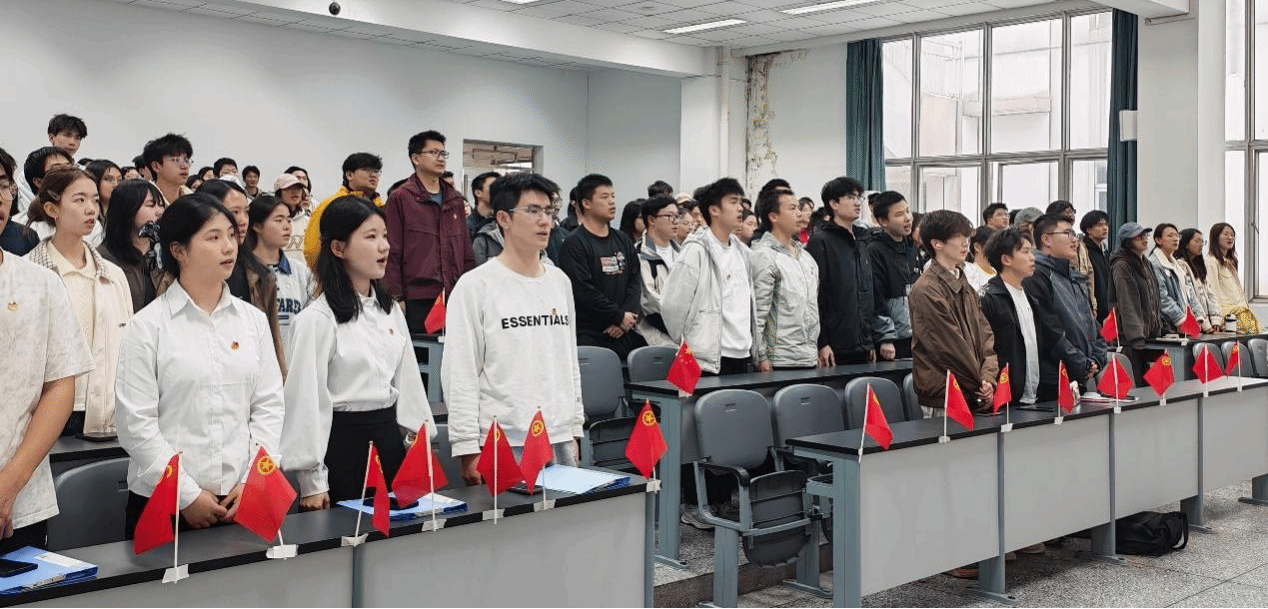 为深入学习贯彻全国两会精神,筑牢青年学生理想信念根基,3月27日下午,应用化学202505、信科202503、法学202504、法学202505四个团支部,联合理学院、法学院发展指导中心,共同举办“深学两会强信念·矢志前行建新功”示范性班团活动。法学院党委办主任匡薇老师、理学院党委办副主任杨岚楠老师等嘉宾出席活动,各支部全体同学参与活动。活动伊始,同学们伴随着激昂的旋律,起立齐唱中国共产主义青年团团歌,为本次活动拉开序幕。
