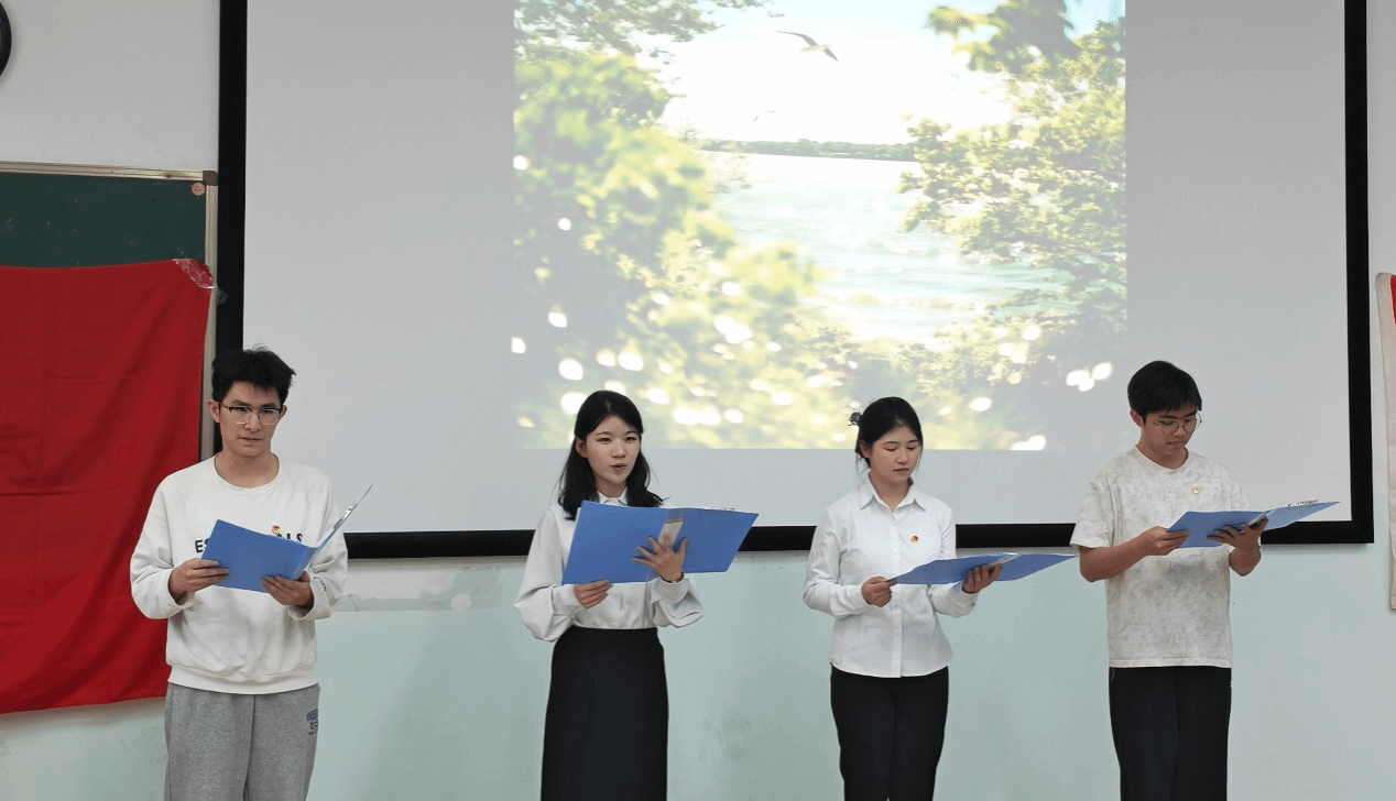 陈桂花、陈惠婷等四名支部同学带来诗朗诵《我喜欢出发》与《校史华章》,以深情的演绎诉说川农青年的使命与担当,表达了践行两会精神、矢志建功立业的坚定决心,赢得现场阵阵掌声。