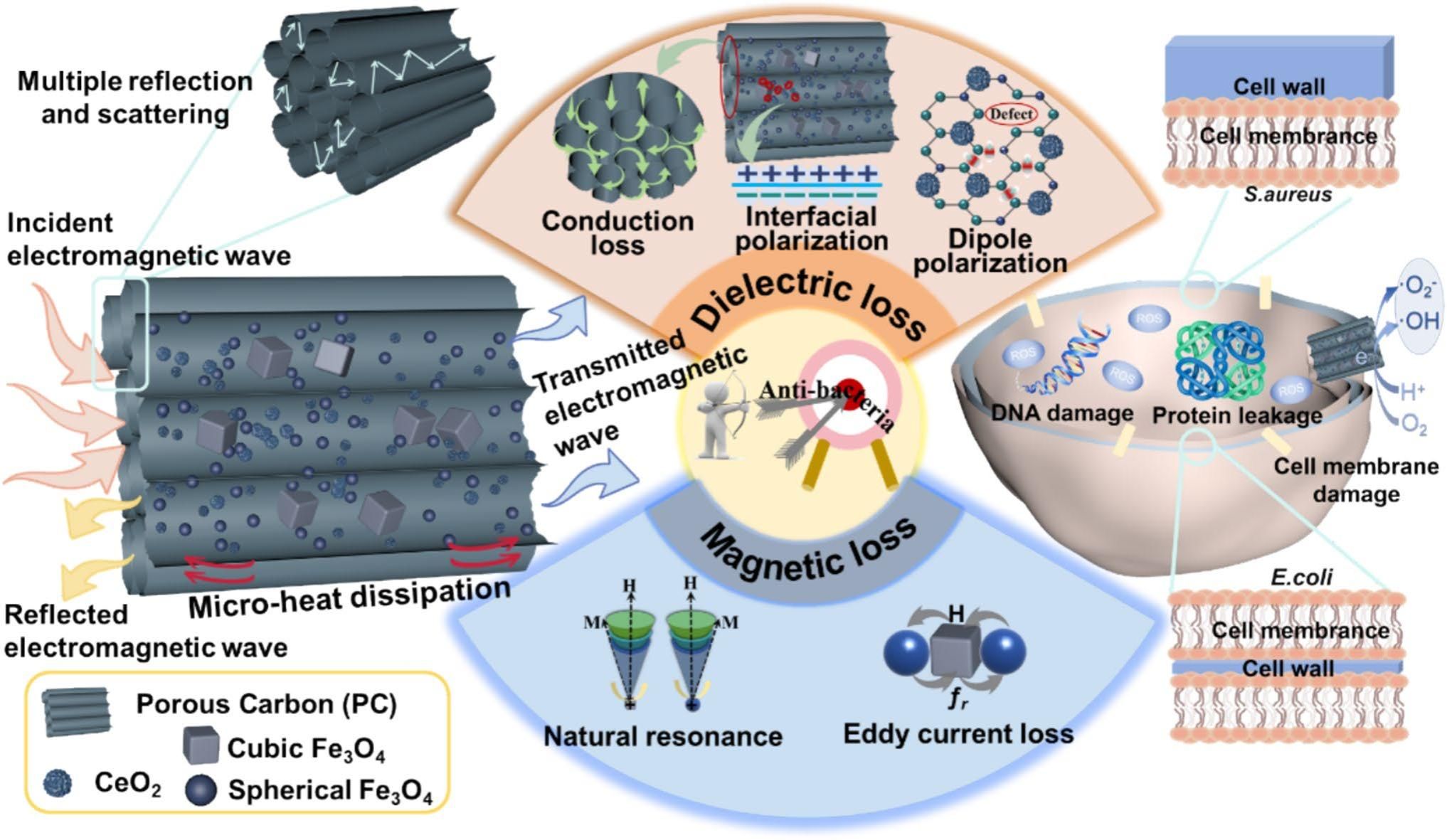 随着5G通信、军事隐身技术及精密电子设备的快速发展,电磁波吸收材料在抗干扰和隐身领域的重要性日益凸显。然而,在潮湿、富微生物环境中(如医疗植入设备、海洋装备),微生物代谢产物会腐蚀吸收体结构,导致其电磁性能逐渐退化。传统材料难以兼顾高效吸波与长效抗菌性能,成为制约其实际应用的瓶颈。