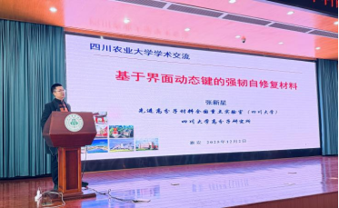 报告会上,张新星教授首先作了题为《基于界面动态键的强韧自修复材料》的报告,系统介绍了自修复材料的研究进展与应用前景。他详细阐释了界面动态键在材料自修复过程中的作用机制,指出动态化学在废弃塑料升级回收、工业应用等方面的巨大潜力。